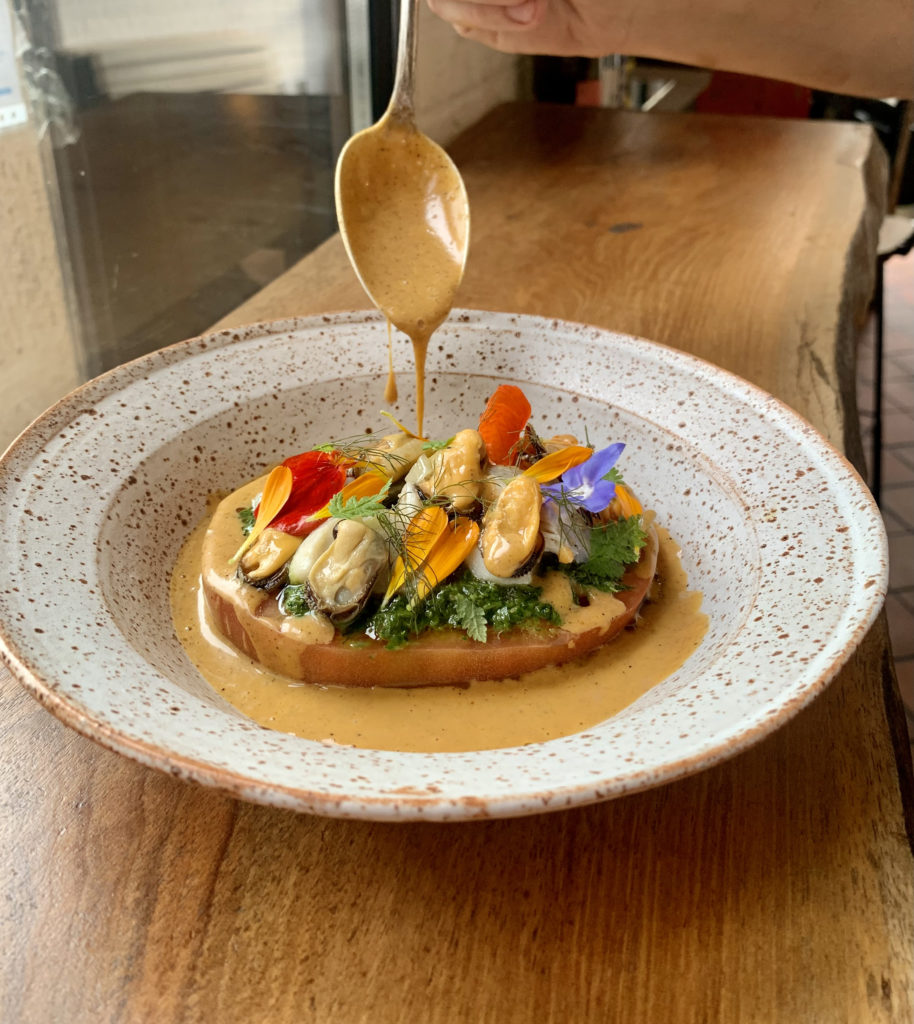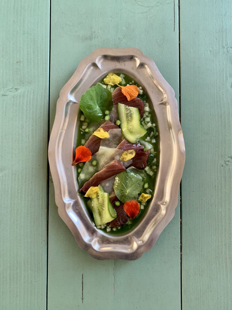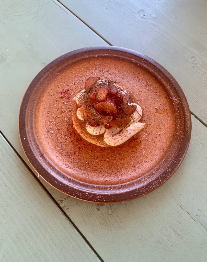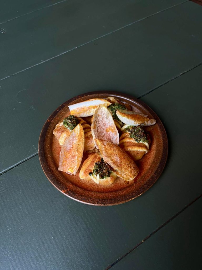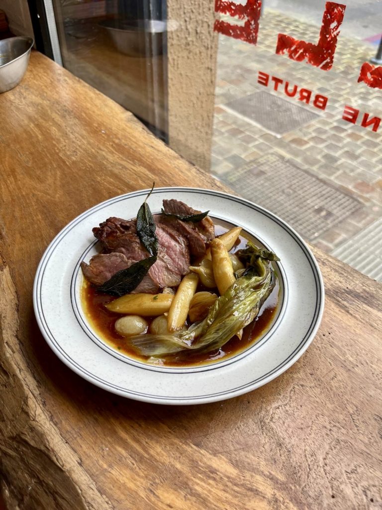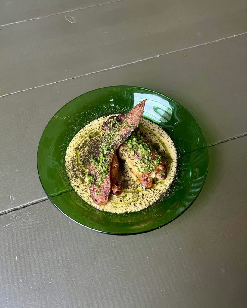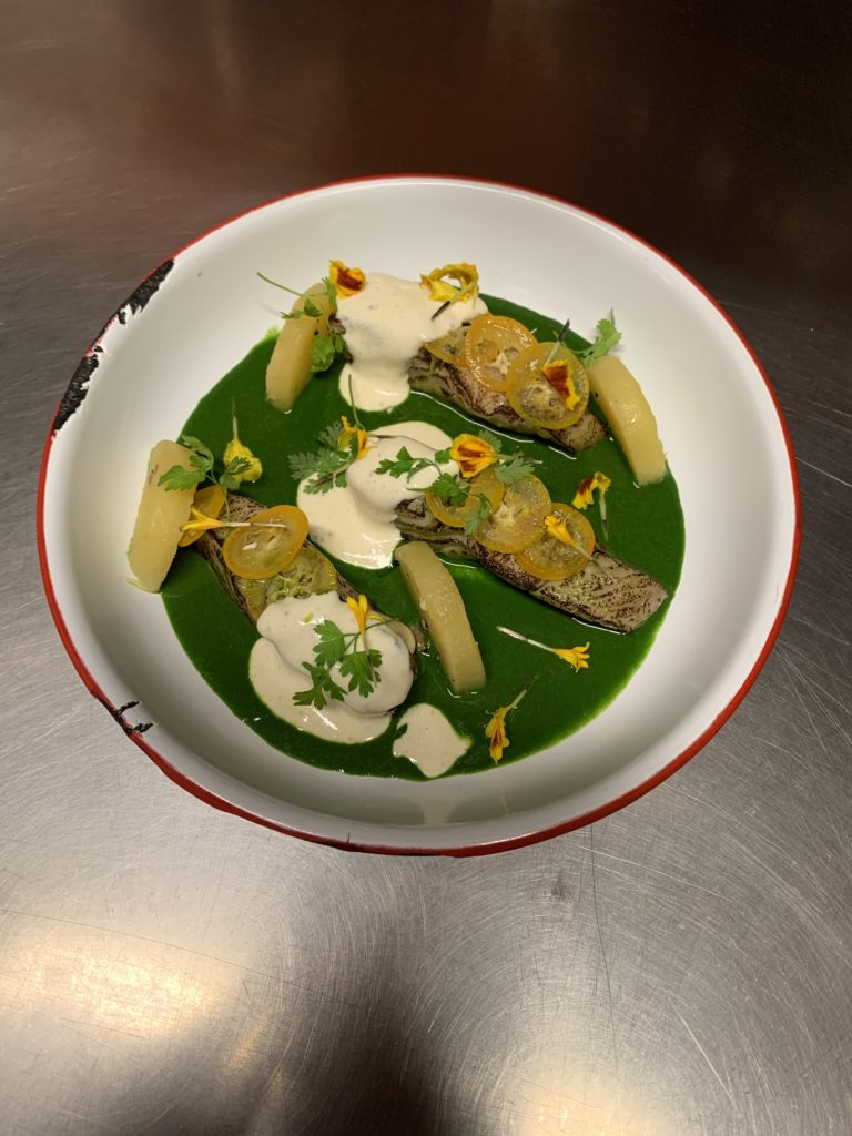 Salade de haricots verts / vinaigrette fraise / câpres frits Gigots d’agneau / purée / bette à carde grillée / jus au vinaigre de capucine Calamar / tomates / nduja / sauce hollandaise Échine de cohcon / raddichio mariné / jus tranché au gingembre frais Truite confite / chou rave mariné / ajo blanco Financier / diplomate au shiso / figue / glace au yaourt / sirop au pollen Saint jacques / vinaigrette agrume / harissa / grenade Moule en escabèche / topi frit / hollandaise / oseille / katsuoboshi Brochette de poulpe et sot l’y laisse / petits pois / jus aux herbes / rouille / émulsion estragon Bao / seiche à la sétoise / laitue / raifort Poireaux / vinaigrette babeurre / sarrasin / cheddar Colin grillé / navet boule d’or / coulis de cresson / émulsion miso / kumquat Thonine / aguachile / chou rave / concombre / capucine Sardines en papillon… Gâteau à l’huile d’olive / Rhubarbe poché / ganache au levain / fenouil / pollen Asperges / gallantina / pesto de tournesol / vinaigrette rhubarbe / ail des ours Truite / purée / bette à carde / beurre blanc capucine / oseille Tomates / purée d’herbes / lieu noir / jus de moule / beurre noisette / levure rôtie Tarte au sirop de liège / ganache au levain Gnocchi ricotta fumée / jus de pdt / épinard / piments / pangrattatto Huitres / gel citron / kumquat / huile verte Mousse chocolat / orge malté / crème mascarpone / stout / speculoos Gigot d’agneau / oignons perles / asperges blanches / scaroles / jus tranché au gingembre Ailes de poulet farçis / mousseline de maquereau / sauce au poivre vert Couteaux en escabèche / poires / endives Crème brulée/ tonka / kumquat / sirop de pollen Joue de lotte en tempura / aïoli / salsa verde / endives / tempura Gnoccho fritto / sardines marinées / ricotta Flatbread / romesco / aubergines / vinaigrette miso / brousse Chou farçi / canard / pignons / jus de viande vinaigré / gingembre Bolognese / gnocho fritto / parmesan Tartare de boeuf / vinaigrette jus de viande / chips / laitue / raifort / huile de ciboulette